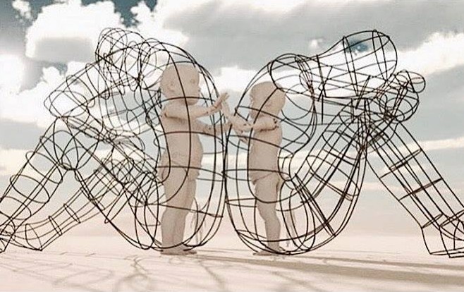 What happens when couples fight? Burning Man Festival, USA, 2015. Sculpture by Alexandr Milov. The inner expression of human nature when conflict arises. Relationship conflict The sculpture is of two adults sitting back to back. Perhaps an argument has occurred. Sadness and hurt are apparent. The inner selves are small children. The children are standing facing …